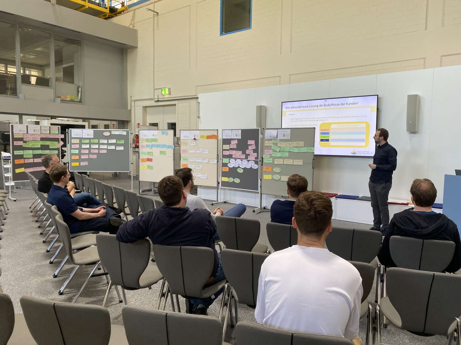 Im Mai fand im Leistungszentrum Logistik und IT ein Geschäftsmodell-Workshop für die aktuellen Transferprojekte statt. Ziel des Workshops war es, Ziel war es, zentrale Zielgruppen der Projektideen systematisch zu identifizieren, deren Bedürfnisse besser zu verstehen und den konkreten Nutzen der entwickelten Lösungen herauszuarbeiten. Alle bewilligten Projekte werden während der Projektlaufzeit durch ein Expert:innen-Team begleitet, um eine nachhaltige Verwertung der Ergebnisse sicherzustellen und den Brückenschlag zwischen Forschungsergebnissen und Industrie zu unterstützen.